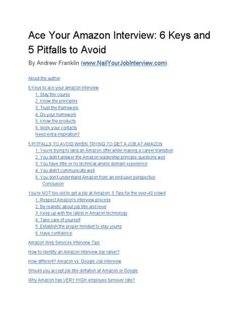 We cannot stress this enough! Familiarize yourself with Amazon’s Leadership Principles. Go beyond just knowing the names; understand what each principle means and how it applies to your past experiences. You’ll need to demonstrate these principles in every answer. Practice answering common interview questions by linking your experiences to the Leadership Principles. For instance, if asked about a time you failed, frame your answer in terms of