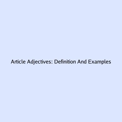 Article Adjectives: Definition And Examples