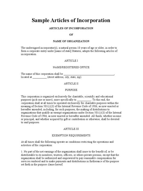 Key Components of Articles of Incorporation