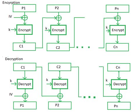 CBC mode addresses the weaknesses of ECB by introducing an initialization vector (IV). The IV is a random value that’s XORed with the first plaintext block before encryption. Each subsequent plaintext block is XORed with the previous ciphertext block before encryption. This makes each ciphertext block dependent on all preceding plaintext blocks, effectively hiding patterns. CBC requires an IV for the first block, and this IV must be known to both the sender and receiver but does not need to be kept secret. A new, unpredictable IV should be used for each encryption . CBC is one of the most widely used modes because of its balance between security and efficiency.
