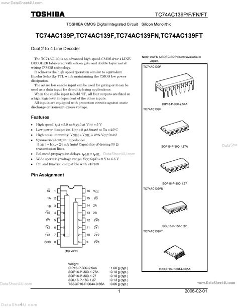 • Pinout: A diagram showing the physical layout of the pins on the chip package (e.g., DIP, SOIC) and what each pin does (Vdd, GND, Inputs A1, B1, Outputs Q1, etc.). This is essential for correctly wiring the chip on a breadboard or PCB.