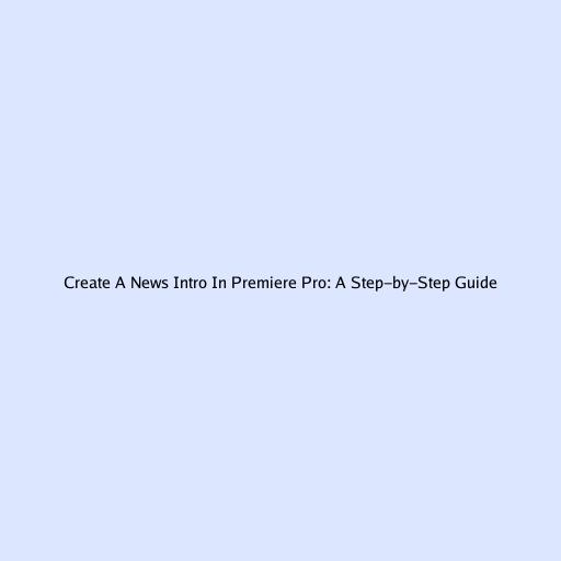 Create A News Intro In Premiere Pro: A Step-by-Step Guide
