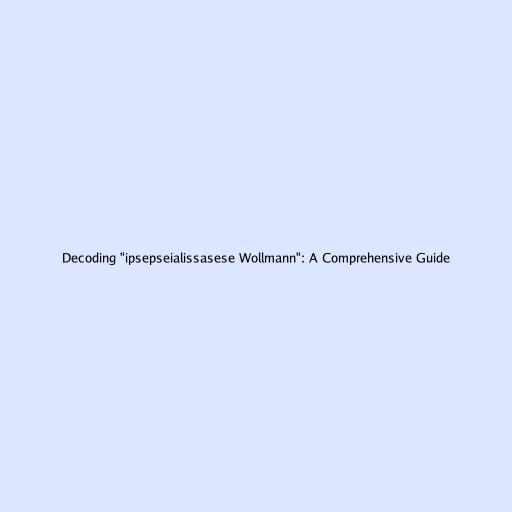 Decoding “ipsepseialissasese wollmann”: A Comprehensive Guide