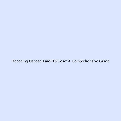 Decoding oscosc karo218 scsc: A Comprehensive Guide