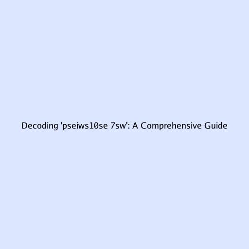 Decoding ‘pseiws10se 7sw’: A Comprehensive Guide