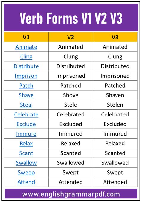 Understanding when and how to use each of these forms is crucial for clear and correct communication. The base form is used in the present tense, with modal verbs, and in the infinitive form. The past tense is used to describe actions that happened in the past. The past participle is used in perfect tenses and passive voice constructions.