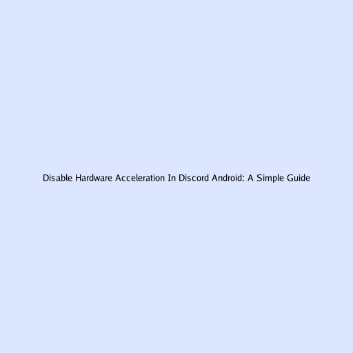 Disable Hardware Acceleration In Discord Android: A Simple Guide