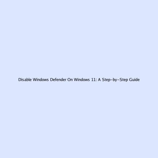 Disable Windows Defender On Windows 11: A Step-by-Step Guide