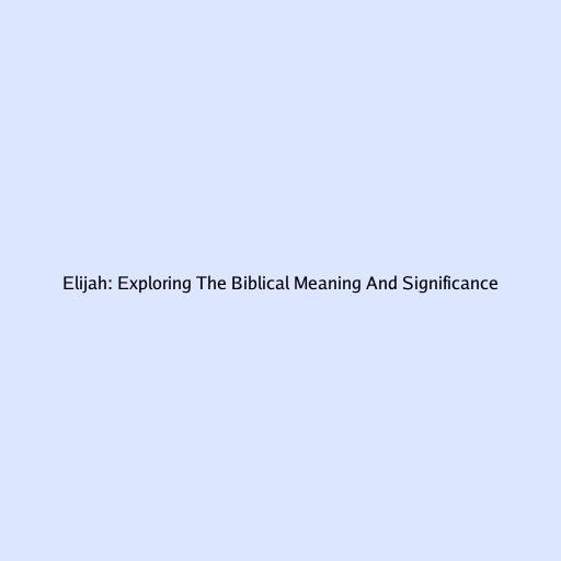 Elijah: Exploring The Biblical Meaning And Significance