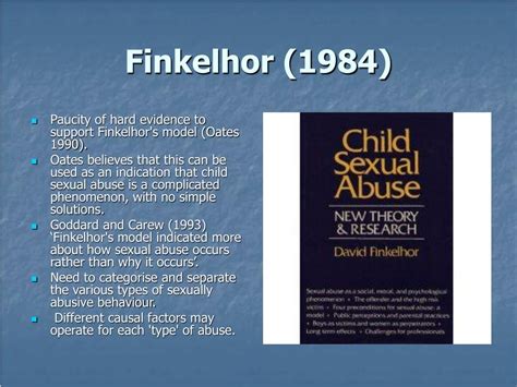 Alright guys, let’s get straight to the heart of the matter: what exactly did Finkelhor’s 1984 research uncover? At its core, the study, often referred to as “Child Sexual Abuse: New Theory and Research,” by David Finkelhor, was groundbreaking because it moved beyond simply documenting the existence of child sexual abuse. It aimed to theorize and understand the dynamics and the prevalence of this complex issue. One of the most significant contributions was Finkelhor’s development of a “Four Factors Model” which sought to explain why child sexual abuse occurs. This model suggested that abuse is more likely when there’s a combination of factors: 1. Motivations (the abuser’s desires or compulsions), 2. Power (the abuser’s ability to exert control over the child), 3. Opportunity (circumstances that allow the abuse to happen), and 4. Looseness of Ties (the nature of the relationship between the abuser and the child, where a lack of close supervision or emotional connection can facilitate abuse). This wasn’t just a descriptive account; it was an attempt to build a framework that could help predict and prevent abuse. Finkelhor argued that it wasn’t enough to focus on just one aspect, like the abuser’s pathology. Instead, understanding the interplay of these four elements offered a more comprehensive view. He presented empirical data that supported these ideas, looking at characteristics of abusers, victims, and the situations surrounding the abuse. This holistic approach was a major step forward, moving the field from anecdotal evidence to more systematic analysis. The research also tackled the difficult subject of prevalence , providing much-needed statistics on how widespread child sexual abuse actually was. Before studies like this, the true extent of the problem was often underestimated or hidden. By attempting to quantify it, Finkelhor brought a stark reality into the public consciousness and academic discourse. This empirical grounding was crucial for advocating for change and for developing targeted interventions. The study didn’t shy away from the complexities, acknowledging that each case is unique but that these underlying factors could be identified across many instances. It highlighted the vulnerability of children and the various ways abusers exploit trust and power imbalances. It’s a heavy topic, no doubt, but understanding these foundational elements is key to appreciating the impact of this research.