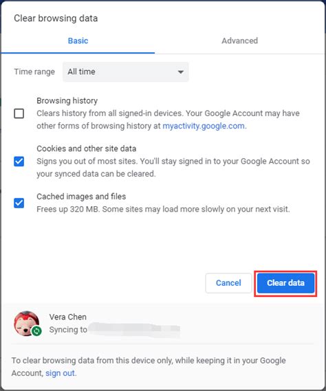 • Click “Clear data.”