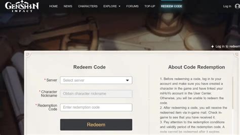 • Go to the official Genshin Impact code redemption website (search for “Genshin Impact code redemption”).