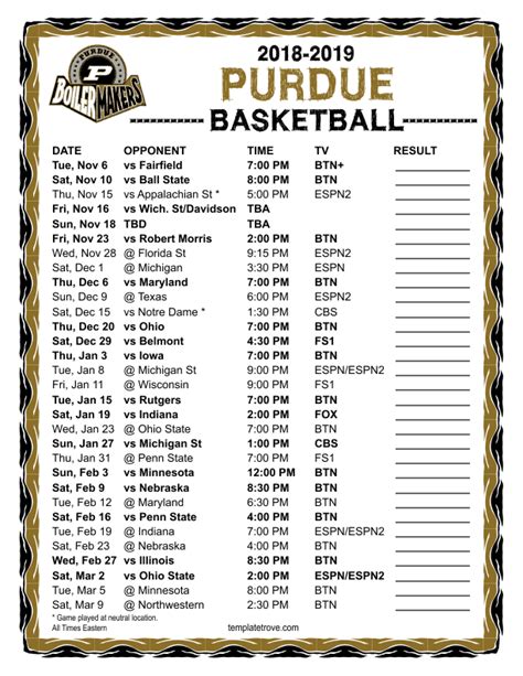 Don’t forget about good old Google! A quick search for “ printable Purdue basketball schedule ” will yield tons of results. Just be sure to double-check the source to ensure the schedule is accurate and current. You don’t want to show up for a game on the wrong day!
