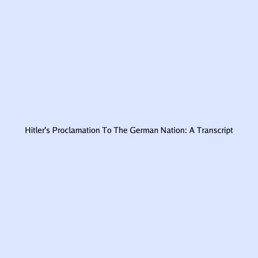 Hitler’s Proclamation to the German Nation: A Transcript
