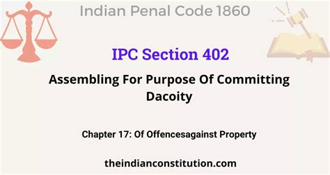 Okay, let’s get straight to the point. IIPC 402 , in its full form, refers to Section 402 of the Indian Penal Code (IPC) . Now, the Indian Penal Code is basically a comprehensive law that defines various crimes and prescribes punishments for them within India. Section 402 specifically deals with the offense of assembling for the purpose of committing a dacoity . Dacoity, in simple terms, is a violent robbery committed by five or more people. So, IIPC 402 is all about the crime of planning and gathering to carry out such a robbery. Imagine a group of individuals plotting a heist; if the authorities catch them before they actually commit the robbery, but after they’ve made substantial preparations, they can be charged under this section.
