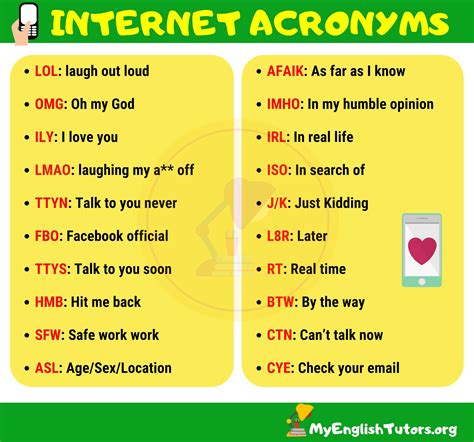 This is just a small sampling, of course. The internet is constantly evolving, and new acronyms are popping up all the time. The best way to stay up-to-date is to pay attention to how people are communicating online and to ask questions when you encounter an unfamiliar abbreviation.
