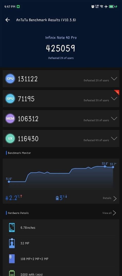 To put this score into perspective, let’s compare it to other smartphones in the same price range. Phones like the Realme GT Master Edition and the Xiaomi Redmi Note 11 Pro+ typically score higher on Antutu, thanks to their more powerful chipsets. However, the Infinix Note 40 Pro still offers a solid performance for its price point. It’s also worth noting that the Antutu score is just one aspect of a phone’s performance. Factors such as software optimization and thermal management can also play a significant role in the overall user experience.