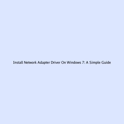 Install Network Adapter Driver On Windows 7: A Simple Guide