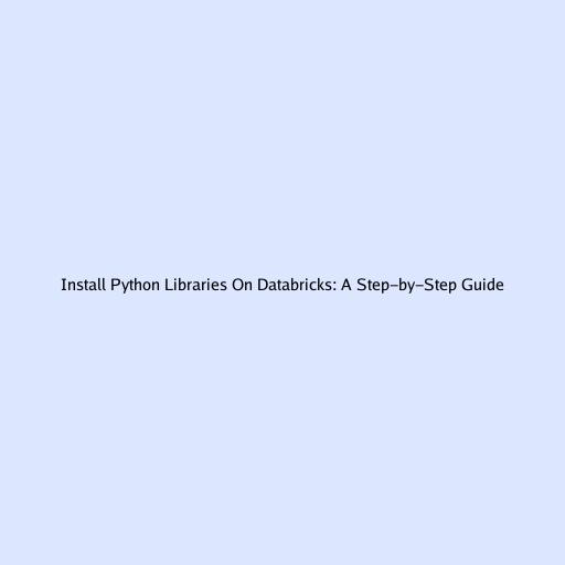 Install Python Libraries On Databricks: A Step-by-Step Guide