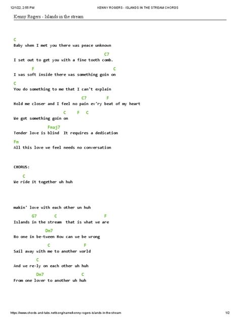 Often, there’s a little transition that leads you from the verse back into the chorus, or vice-versa. Sometimes, a simple D chord can act as a bridge, leading you back to the G (for the verse) or the C (for the chorus). For example, after the verse’s G-C-G-D progression, the final D can hang there for a moment, signaling that something new is coming. Then, you launch into the chorus C-G-Em-D. The beauty of “Islands in the Stream” is its predictability. Once you learn these two main progressions, you’ve pretty much got the whole song down. The structure is clear, and the chord changes are logical. This makes it a fantastic song for beginners to get a feel for how songs are built and how different chords interact.