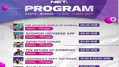Hey, what’s up guys! Pernah nggak sih kalian lagi asyik nonton acara favorit di NET TV, tapi tiba-tiba ketinggalan karena nggak tahu jam tayangnya? Pasti kesel banget, kan? Nah, biar kalian nggak lagi-lagi ngalamin kejadian serupa, di artikel ini kita bakal kupas tuntas soal jadwal tayang NET TV yang pastinya bikin kalian up-to-date terus sama program-program seru kesayangan kalian. NET TV emang punya banyak banget acara yang hits dan banyak digandrungi, mulai dari variety show yang bikin ngakak, drama series yang bikin baper, sampai program berita yang informatif. Makanya, penting banget buat kita tahu kapan aja sih acara-acara ini tayang, biar nggak ada lagi drama ketinggalan momen seru. Kita akan bahas secara mendalam, mulai dari jam tayang primetime yang paling banyak ditunggu, sampai acara-acara spesial yang mungkin aja nggak kalian sadari. Siap-siap catat jamnya ya, guys!