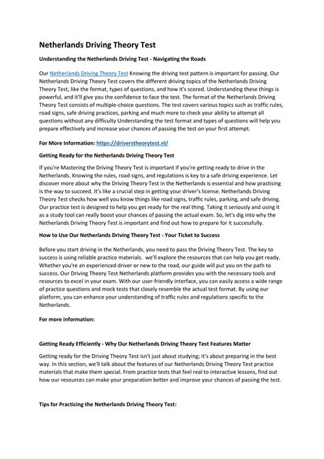 Hey everyone! So, you’re looking to get your driver’s license in the Netherlands, huh? That’s awesome! But before you can hit the road with confidence, there’s a big hurdle to jump: the driving theory test in the Netherlands . Yeah, I know, the thought of theory tests can send shivers down anyone’s spine, but don’t sweat it, guys! This isn’t some impossible mission. With the right approach and a solid understanding of what’s expected, you’ll be acing this test in no time. We’re going to break down everything you need to know, from what the test actually is to the best strategies to prepare and pass. So, grab a coffee, get comfy, and let’s dive into how you can conquer the Dutch driving theory test and get one step closer to that sweet freedom of driving.