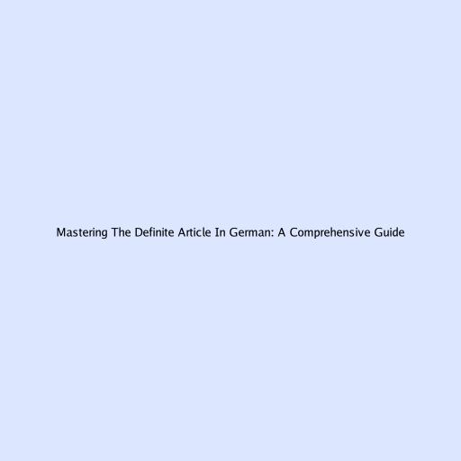 Mastering the Definite Article in German: A Comprehensive Guide