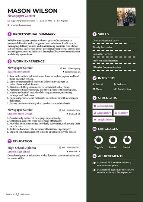 For any newspaper delivery job , reliability and punctuality are non-negotiable. How can you showcase this on your resume? Think about how you can quantify your experience. Did you consistently complete your route within the allotted time? State it! For example, you could say: “ Consistently completed a daily route of 150+ papers within a 3-hour window, ensuring 99% on-time delivery. ” This immediately tells a potential employer that you are efficient and dependable. If you have any experience where you had to work in challenging conditions, like adverse weather, mention that too. Something like: “ Maintained punctuality and route completion during inclement weather conditions, including heavy rain and snow. ” This demonstrates your commitment and resilience. You can also highlight any instances where you were relied upon by your employer or customers. Did you ever fill in for a colleague or take on extra routes? Include that: “ Voluntarily took on additional routes during peak seasons, ensuring continuous service delivery. ” This shows initiative and a willingness to go the extra mile. Even if you don’t have direct work experience, think about school projects, volunteer work, or even personal commitments where you demonstrated these traits. The key is to translate everyday responsibilities into skills that highlight your dependability . Employers love candidates who show up on time and do the job they say they’ll do, every single time. Your resume is your first chance to prove that you’re that candidate, so make sure your reliability shines through.