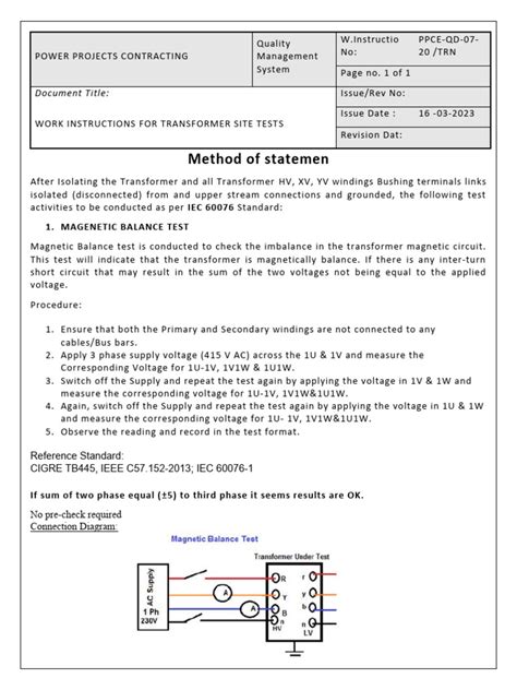 • Safety First: Always prioritize safety during testing. Follow all safety precautions and use appropriate personal protective equipment (PPE). Power transformer testing involves high voltages and currents, so it’s essential to be aware of the potential hazards. Ensure that all personnel involved in the testing are properly trained and qualified.
