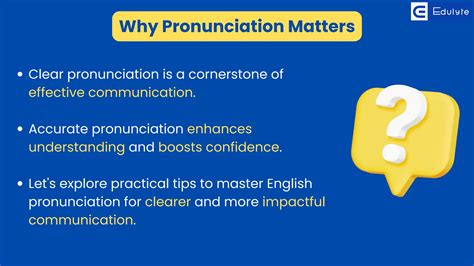 Okay, so why should you even care about pronunciation ? Well, clear pronunciation is super important for a bunch of reasons. First off, it makes communication way easier. When you pronounce words correctly, people understand you better, and there’s less chance of misunderstandings. Think about it: if you mispronounce a key word in a sentence, the whole meaning can get lost in translation. And nobody wants that, right? Especially if you’re trying to explain something important or make a good impression. Good pronunciation boosts your confidence. When you know you’re pronouncing words correctly, you feel more self-assured when speaking. This can be a game-changer in situations like presentations, job interviews, or even just chatting with friends. No more mumbling or hesitating – you’ll be speaking loud and proud! Also, correct pronunciation can open doors to new opportunities. In many professions, clear and articulate speech is highly valued. Whether you’re in sales, teaching, or customer service, being able to communicate effectively is a major asset. Plus, if you’re learning English as a second language, good pronunciation can help you integrate more easily into English-speaking environments. Trust me; people appreciate the effort you put into speaking their language well!
