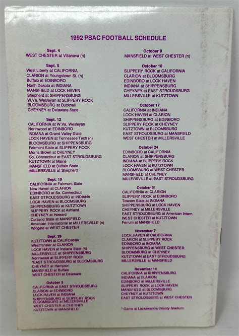 Now, let’s highlight some of the key rivalries that bring the fire to the PSAC football schedule . The Slippery Rock vs. IUP matchup is always a highlight. These two teams consistently battle for conference supremacy, and their games are usually decided by a few points. It’s a clash of titans that you won’t want to miss! The West Chester vs. Shippensburg rivalry is another classic. These two teams are located close together. It’s a game filled with local pride and passionate fans. Get ready for a loud and exciting atmosphere! The Bloomsburg vs. Kutztown matchup is a heated rivalry in the Eastern Division. Both teams have a history of success. These games are always competitive, and they often have a significant impact on divisional standings. These are just a few of the many exciting teams and rivalries that make up the PSAC football landscape. Be sure to explore the schedule and discover your own favorite teams and matchups. With so much talent and competitive spirit, you’re guaranteed to enjoy every game!