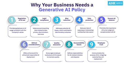 Next up, compliance with regulations is another critical reason. As AI technologies advance, regulatory bodies worldwide are developing frameworks to govern their use. Our AI policy helps us stay ahead of the curve, ensuring we comply with all applicable laws and standards, such as GDPR, CCPA, and any AI-specific regulations that may emerge. This proactive approach not only mitigates legal risks but also builds trust with our clients and stakeholders, demonstrating our commitment to responsible AI innovation. We regularly update our policy to reflect the latest regulatory changes, ensuring our practices remain compliant and ethical.