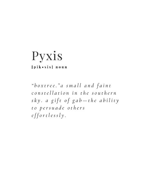 Let’s get down to the nitty-gritty: how do you actually say Pyxis, and are there any fun variations to consider? The most common pronunciation of Pyxis is “pik-sis.” Easy enough, right? It rolls off the tongue with a certain crispness, making it both memorable and elegant. Now, while Pyxis itself is relatively straightforward, you might be wondering about variations or nicknames. Given its unique nature, Pyxis doesn’t have a plethora of traditional variations like some other names. However, that doesn’t mean you can’t get creative! For nicknames, you could consider something short and sweet, like Pix or Pyx . These offer a more casual, affectionate way to refer to someone named Pyxis. Another approach is to draw inspiration from the meaning and origin of the name. Since Pyxis is associated with compasses and navigation, you might consider nicknames that evoke those themes, such as Guide or Star . These nicknames add a layer of depth and personality, connecting back to the name’s rich symbolism. If you’re feeling adventurous, you could even explore variations in other languages. For example, the Latin word for compass box is “buxis,” which could inspire a unique twist. Ultimately, the beauty of a name like Pyxis lies in its originality. It’s not a name you hear every day, which means you have the freedom to define it and make it your own. Whether you stick with the classic pronunciation or experiment with creative nicknames, Pyxis offers a world of possibilities. Don’t be afraid to embrace its uniqueness and let your imagination run wild. After all, a name is more than just a label; it’s a reflection of your personality and a celebration of your individuality. So, go ahead and explore the different ways to pronounce and vary Pyxis – you might just discover a hidden gem that perfectly captures its essence.