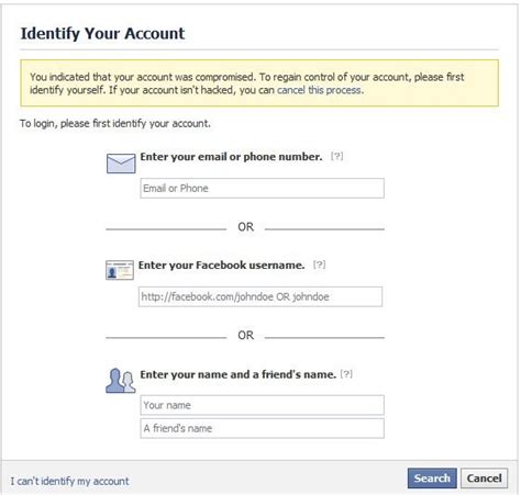 • Entering your email address or phone number: Use the email address or phone number associated with your Facebook account to help Facebook locate your profile.