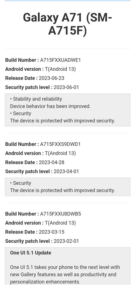 Understanding Different Types of Samsung Galaxy A71 Updates