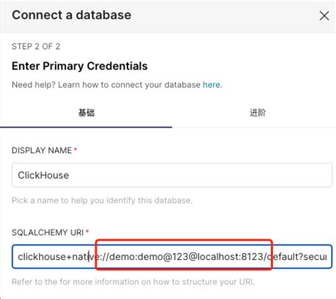 2. SQLAlchemy URI: This is the core of the connection string. It tells Superset how to connect to your ClickHouse database. The format is generally: