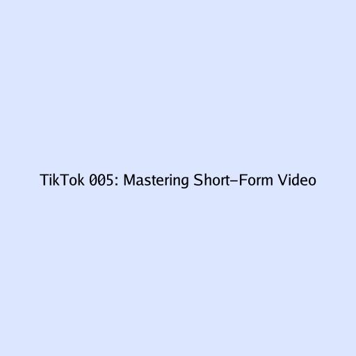 TikTok 005: Mastering Short-Form Video