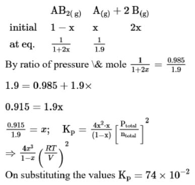 For the reaction A + 2B ⇌ AB2, the equilibrium constant Kp is defined as: