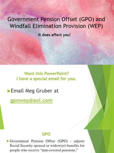 The Government Pension Offset (GPO) , guys, is a provision in U.S. Social Security law that can significantly reduce, or even entirely eliminate, Social Security spousal or survivor benefits for individuals who also receive a pension from a federal, state, or local government job where they did not pay Social Security taxes. Think of it this way: Social Security’s spousal and survivor benefits are designed to provide a safety net for dependents of workers who paid into the system. The GPO steps in to prevent what the law considers a “double-dipping” situation where someone receives a government pension (from non-covered employment) and also collects a full Social Security spousal or survivor benefit based on another person’s work record. It’s crucial to understand that the GPO doesn’t affect your own Social Security benefits earned from jobs where you did pay Social Security taxes; that’s a different provision called the Windfall Elimination Provision (WEP), which we’ll touch on later. The GPO is specifically about those derivative benefits – meaning benefits you get based on someone else’s work record, like a spouse, ex-spouse, or deceased spouse. The primary aim here is fairness and equity within the Social Security system, ensuring that those who didn’t contribute to Social Security through their own government employment don’t receive the full derivative benefits intended for those whose sole retirement income might be from Social Security. This offset was enacted in 1977 as part of broader Social Security amendments aimed at keeping the system solvent and equitable. It’s not a new rule, but it’s one that often catches people off guard because its implications aren’t always widely understood until it’s time to claim benefits. So, if you or your spouse worked for a government agency – maybe a teacher, police officer, or firefigher – and that job didn’t include Social Security contributions, then paying close attention to the GPO is absolutely essential for your retirement planning. This offset ensures that benefits are distributed in a way that reflects contributions, preventing an unintended advantage for those with non-covered pensions. It’s a key part of the Social Security landscape that impacts many public sector employees and their families, making a thorough understanding of its mechanics indispensable for accurate financial forecasting.