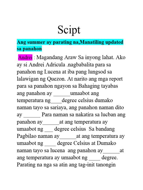 Alright guys, let’s dive into our sample Tagalog weather report script . Imagine you’re on air, ready to deliver the latest weather updates. Here’s a script you can adapt: